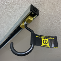 The hooks are made from plastic, roller bearings and regular bike storage hooks. Currently GearBlocks has three sizes available, Standard, Large and Fat Tire. The hooks are delivered with the hook parallel to the sliding channel. In some situations the user may want the hook to be perpendicular to the sliding channel, in which case the user may notify GearBlocks when placing the order. The hooks are meant to be permanently set in one orientation or the other and are set in place when ordered.