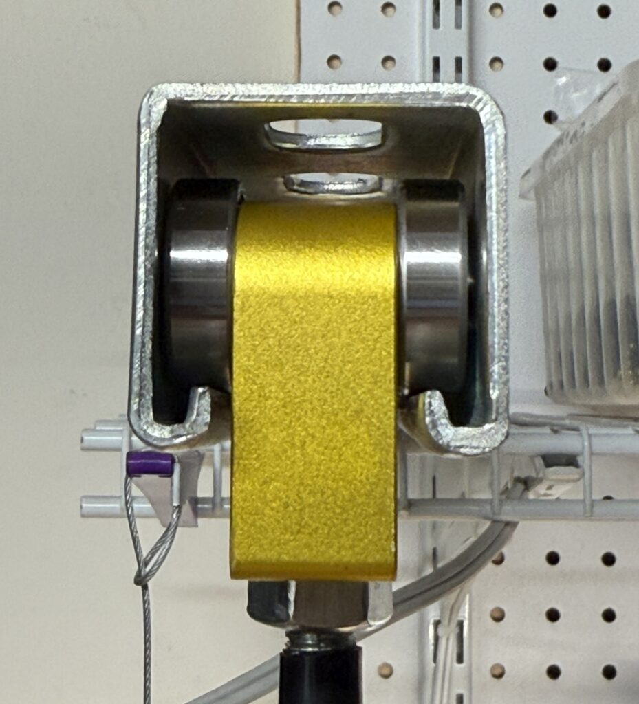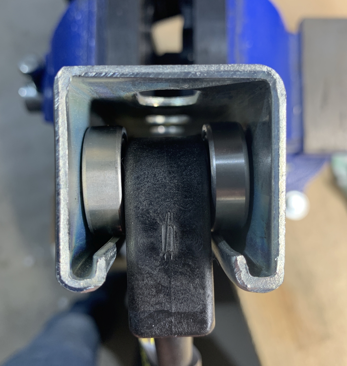 This page shows what the GearBlocks hooks should look like when inserted into strut channel. The width of the bearing and axle should be 35 to 35.4mm. The inside dimension of typical strut made from 12GA steel is 36mm.